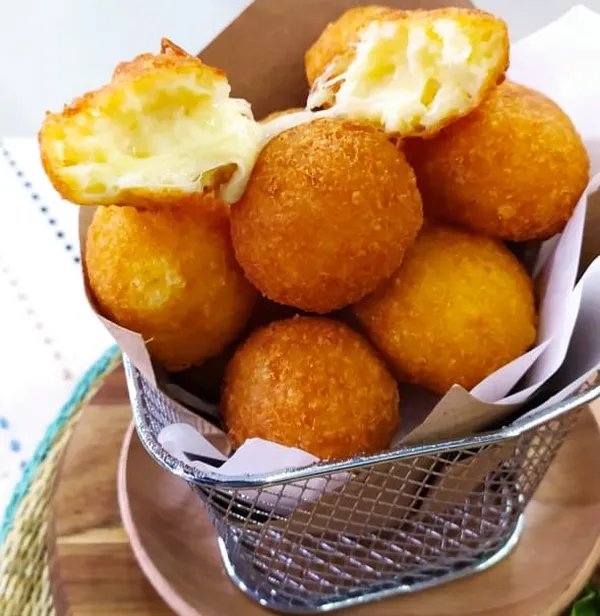 18 unidades de bolinhas de queijo super crocantes por fora e cremosas por dentro, douradas no ponto certo. Perfeitas para compartilhar… ou não 😋