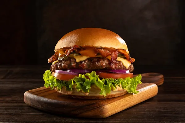 A joia da coroa da casa. Pão brioche com gergelim, blend selecionado da casa, cheddar duplo cremoso, bacon crocante, picles delicados, alface, tomate, cebola roxa e nosso molho especial exclusivo Gleed, finalizado com mussarela derretida. Intenso, equilibrado e inesquecível.